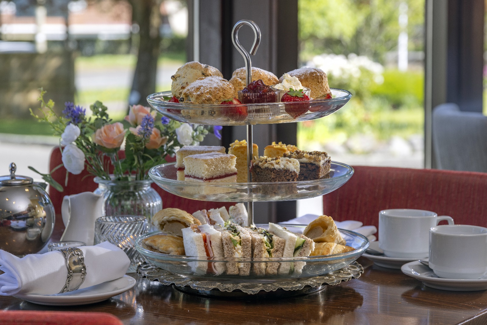 Including your choice of 3 sandwiches, seasonal savoury bite, fruit and plain scones, seasonal cakes and sweet treats plus your choice of tea, coffee or hot chocolate